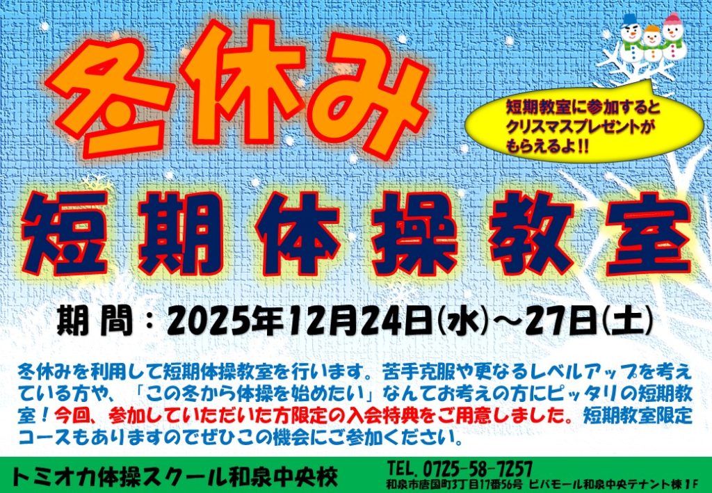 《2025冬休み短期体操教室》のお知らせです⛄️