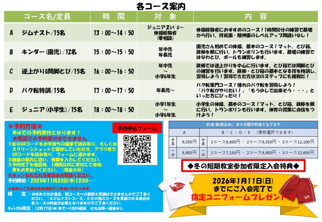 「この冬から体操を始めたい」なんてお考えの方にピッタリの短期教室!
