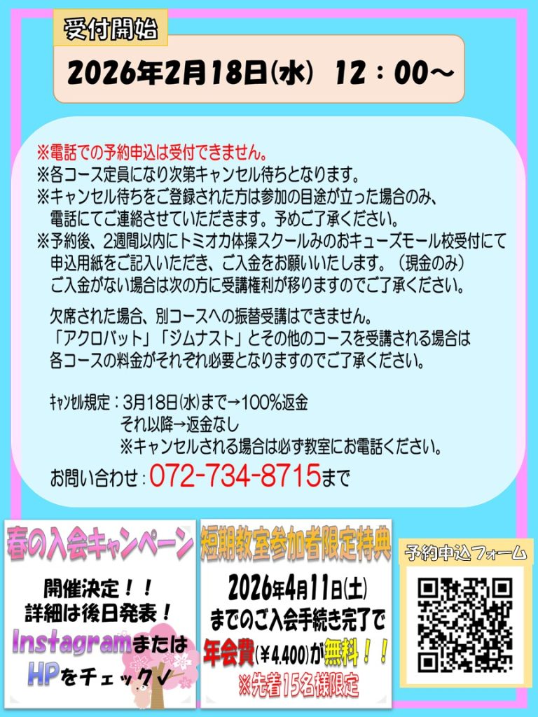 ⚠️各コース定員になり次第キャンセル待ちとなります。