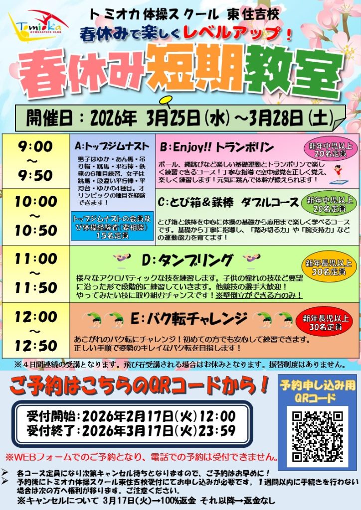 🌸《春休み短期体操教室》のお知らせです📢☘️
